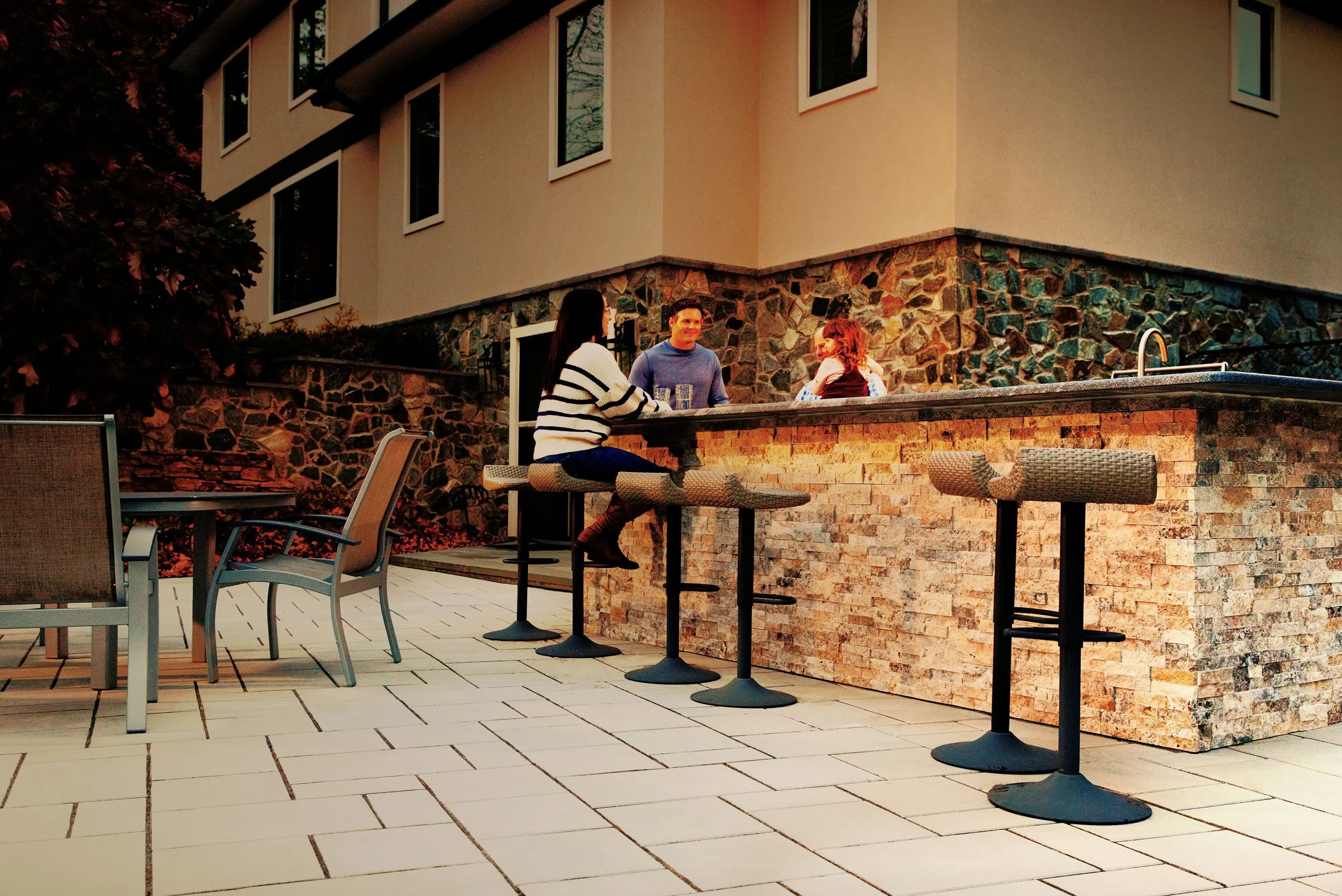 Adding a media center where you can add your phone’s playlist can increase the ambiance of your entertaining space. Near the bar can be a great spot to add a weatherproof big-screen TV where you can turn on the big game.